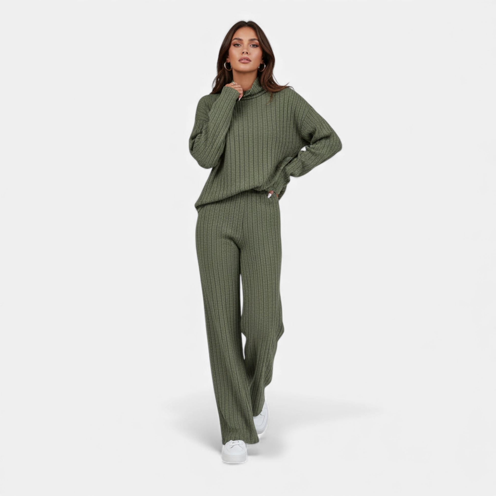 Elorainemode | Women’s Striped Turtleneck Suit – Quiet Elegance